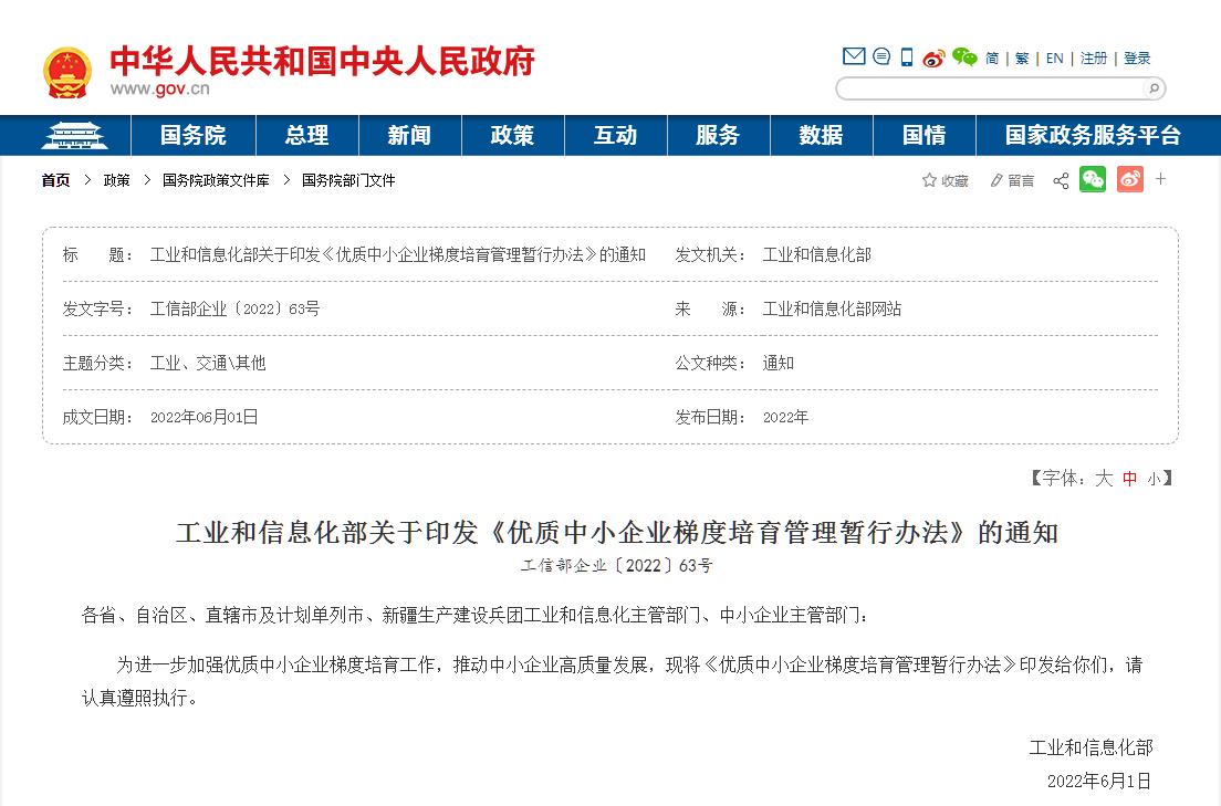日前,工信部發布《優質中小企業梯度培育管理暫行辦法》(以下簡稱《辦法》),明確建立由創新型中小企業、專精特新中小企業和專精特新小巨人企業組成的優質企業梯度培育體系,并分層明確培育措施和標準。